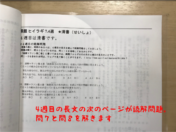 3、読解問題をやります。やり方はこのページ下に。読解問題